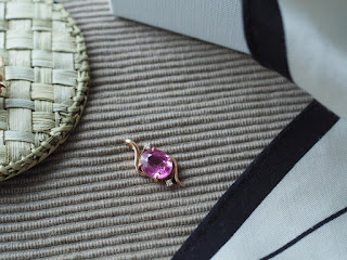 流線輕盈,加上玫瑰金的秀氣,正襯她精巧身形與眼鏡後的靈動的大眼點綴兩顆天然鑽,讓老件能輕盈續流傳拿到項鍊的她用興奮、高亢地說: 「原本只想收著,現想帶著了!」身為黃金單身貴族的她,我們藉一抹粉桃祝福她早日遇得真愛🌿