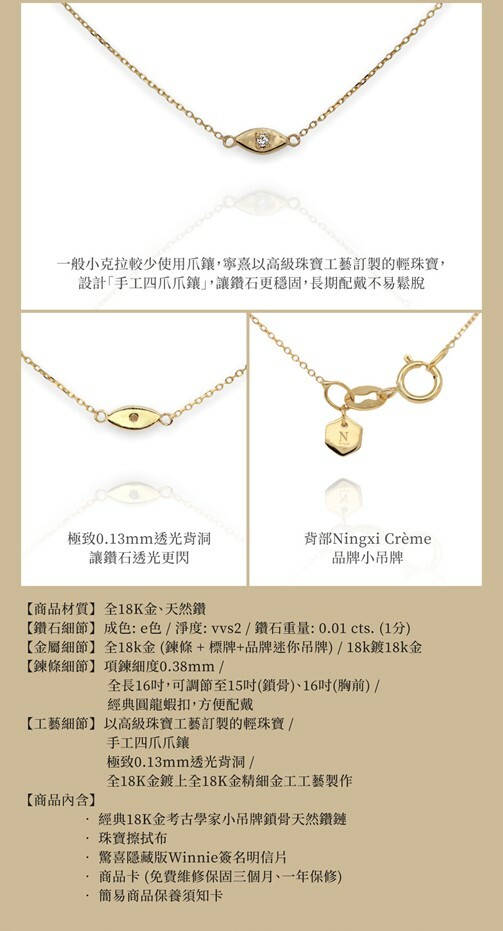 - 經典18K金考古學家小吊牌鎖骨天然鑽鏈